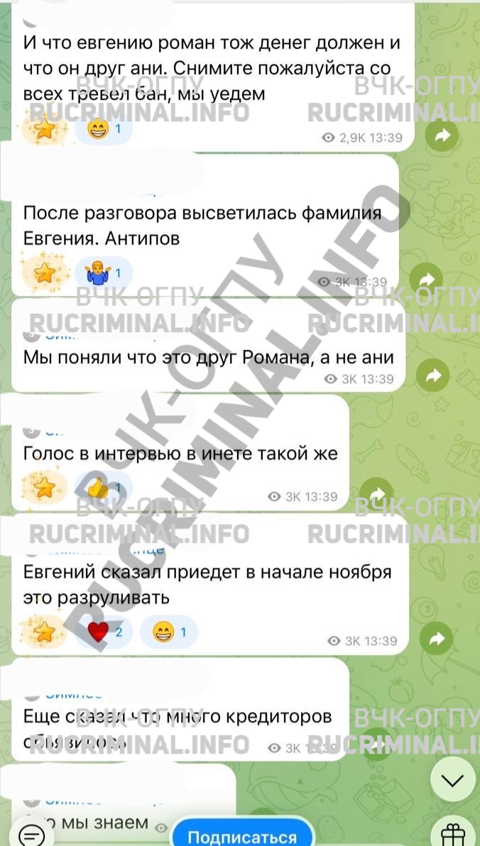 Yevgeny Antipov, founder of "God's Eye," a friend of Novak's, played a major role in the events. After Roman and Anna were murdered, he urged the victims to ask the prosecutor's office and the police to lift the travel restrictions on the Novaks. He was also the first to claim they had fled with the money. He then went on to claim that the victim was Roman's and that he was no friend of his.