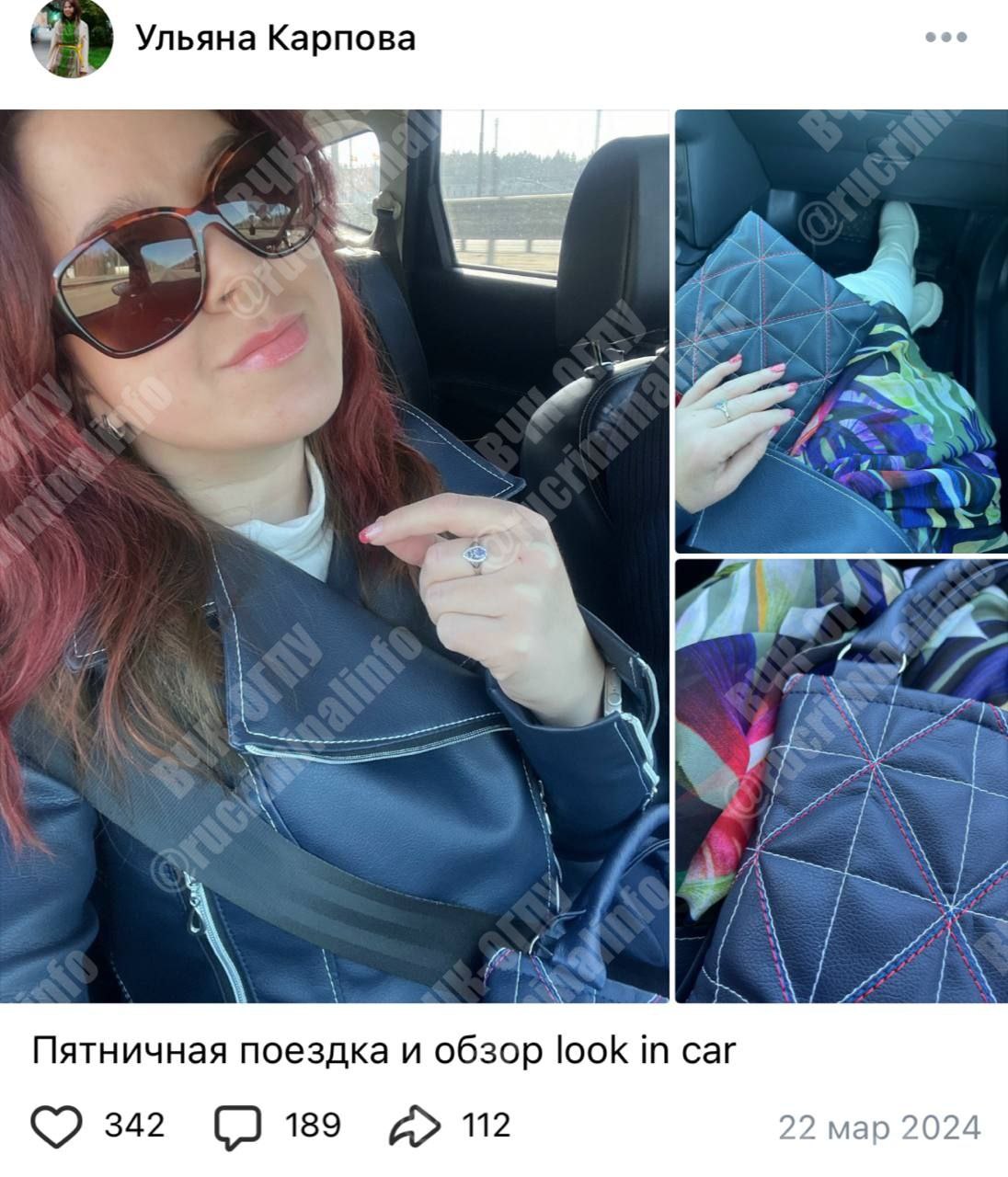22 марта Ульяна и Александр Карповы приехали к «Крокусу» около 19:30, сдали вещи в гардероб и к 19:40 заняли места в амфитеатре. В 19.50, прямо перед началом атаки террористов дизайнер на своей странице в ВКонтакте опубликовала новый пост:
