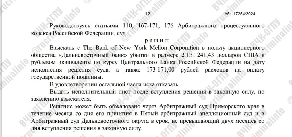Российский банк, конечно, потребовал вернуть средства с процентами и на днях даже выиграл дело в арбитраже РФ, однако это решение тоже можно назвать символическим: механизмов принуждения нью-йоркского банка у суда нет.
