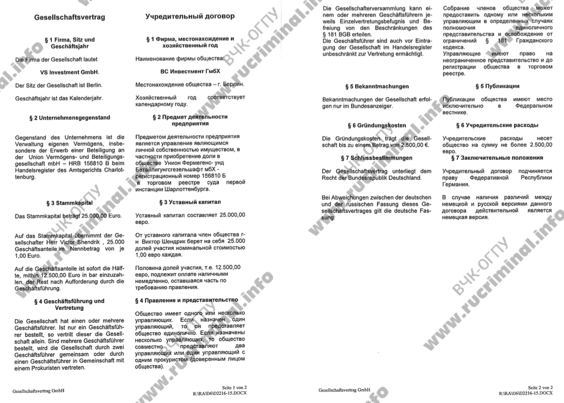 В Германии у Шендрика-младшего до сих пор есть фирма VS Investment в Берлине, активы которой исчисляются миллионами евро. Фирма входит в крупную UNION Group, совладельцами которой, согласно данным реестра Германии, выступают очень известные в России люди. Один из них - московской адвокат Александр Тобак, бизнес-партнер депутата Госдумы Андрея Макарова - им принадлежит адвокатское бюро «Андрей Макаров и Александр Тобак». Другой — ресторатор Эдуард Складман, который когда-то был партнером Алексадра Новикова в московском казино «Ангара», а потом очень удачно перебрался в Европу. Складман полностью прервал все публичные связи с Россией и представляется немецким инвестором. Доли в компаниях, входящих в UNION Group, принадлежат также его дочери Анне Складман и недавно родившемуся сыну.