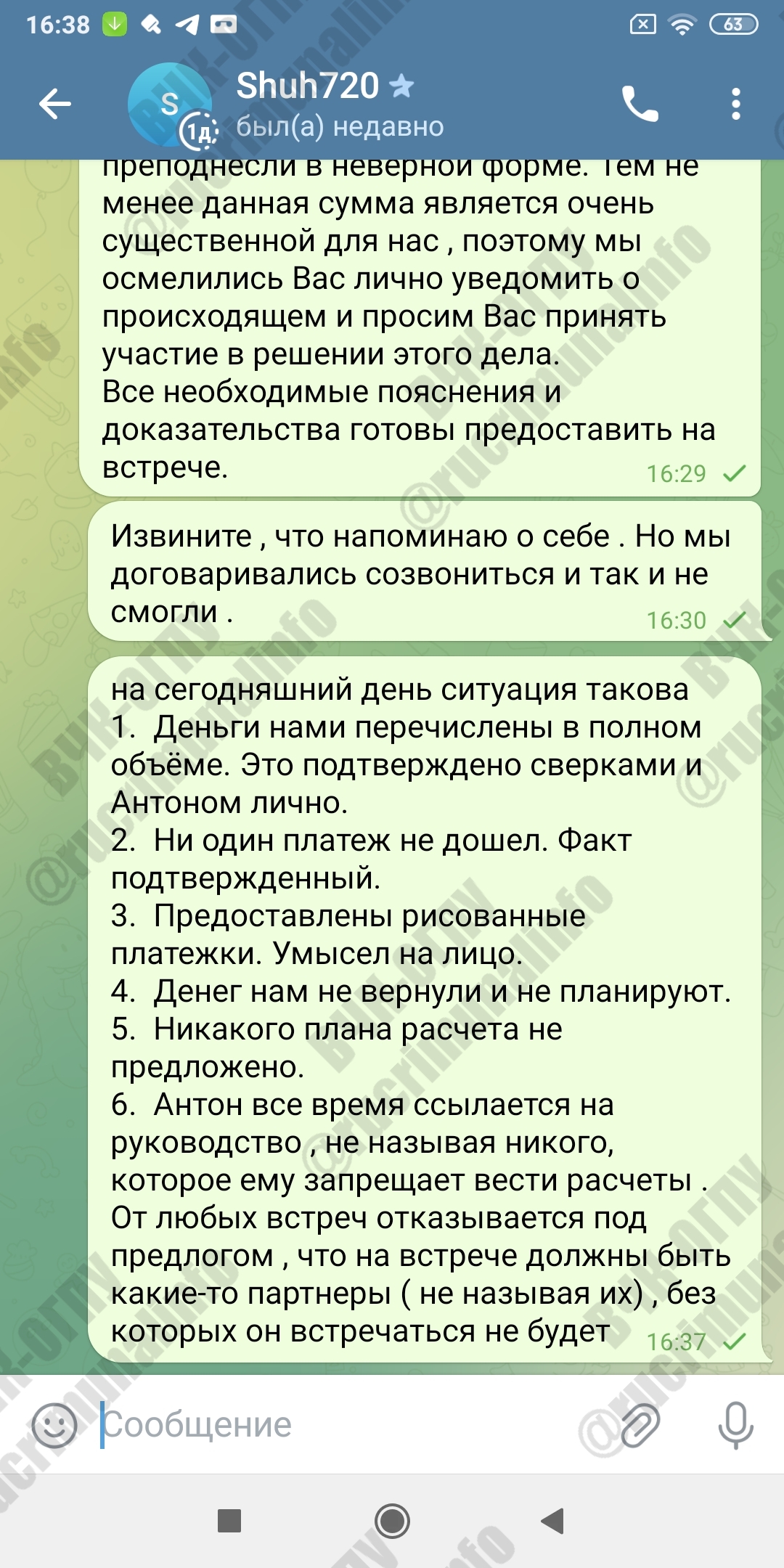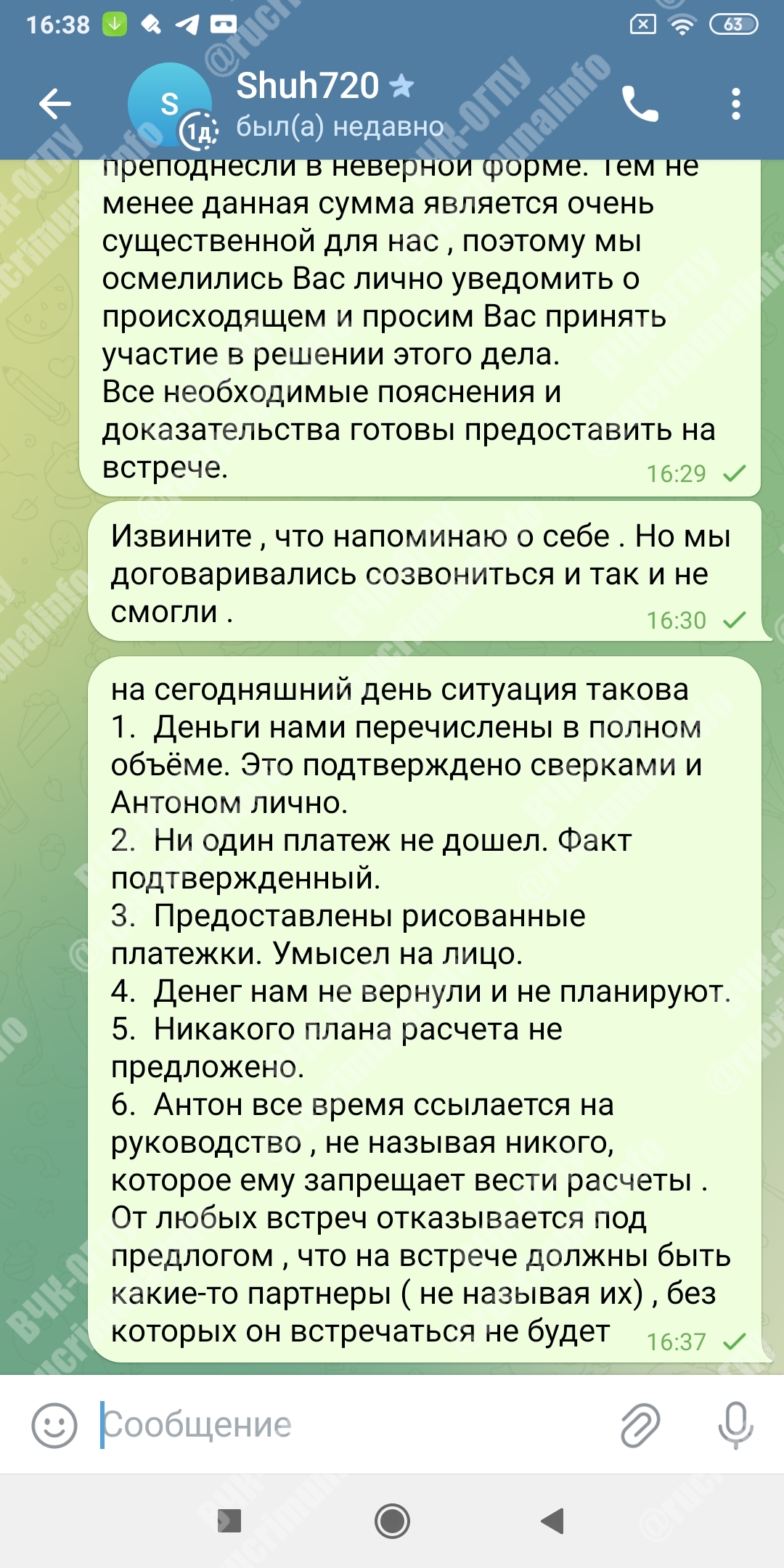Антон Москаленко координировал операции Antarex в случае с хищением 650 000 USDT (свыше 54 миллионов рублей), описанные в предыдущем материале. После обращения пострадавшей компании он взял на себя обязательства по возврату средств, но на следующий день отказался от выполнения обещаний. В конфликт вмешались другие фигуранты: Аслан (@kh_khalif) и Юрий Квашонкин, номинальный бенефициар ABCex и генеральный директор ООО «Лакост». Они оказывали давление на клиента через угрозы, включая фразы: «с нами связываться не надо», «вы не представляете, на кого пишете» и «вы не вывезете ответки». В итоге пострадавшим вернули лишь 6 000 USD, а обещания Расулова урегулировать ситуацию за три недели остались пустыми.