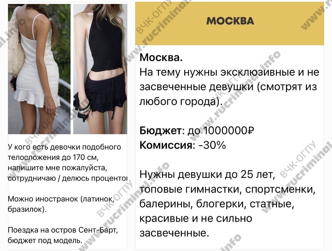 Особенно активно и за хороший ценник (от 3 тысячи долларов за день) менеджеры ищут подчеркнуто худых моделей на острова Сен-Барт и Сен-Мартен — места силы миллиардеров со всего мира. Из российских богачей там любит проводить время Роман Абрамович. При этом, один из заказчиков категорически против девушек из РФ и ждет только украинок или с паспортом ЕС.