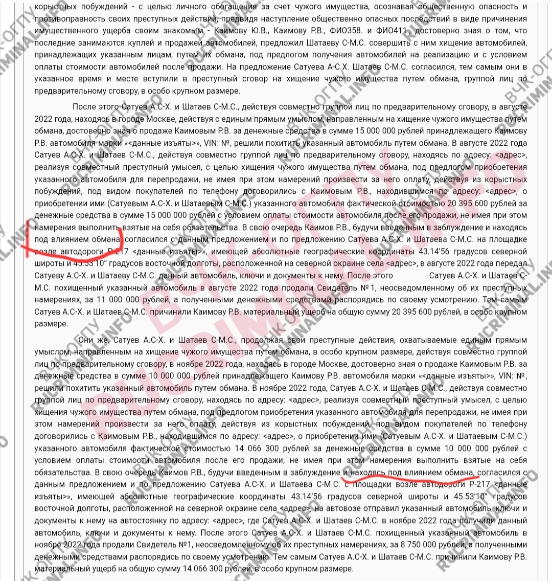ВЧК-ОГПУ и Rucriminal.info изучили приговор жителям Чечни Сатуеву и Шатаеву, благодаря которому родственники главы правительства Чечни Магомеда Даудова (Лорд) смогли забрать 30 премиальный автомобилей у жителей разных регионов России – добросовестных покупателей. Собственно, была использована схема, которой позже воспользовалась Лариса Долина с ее квартирой, только реализовали ее еще до истории с певицей. И мы нашли в приговоре массу интересного.