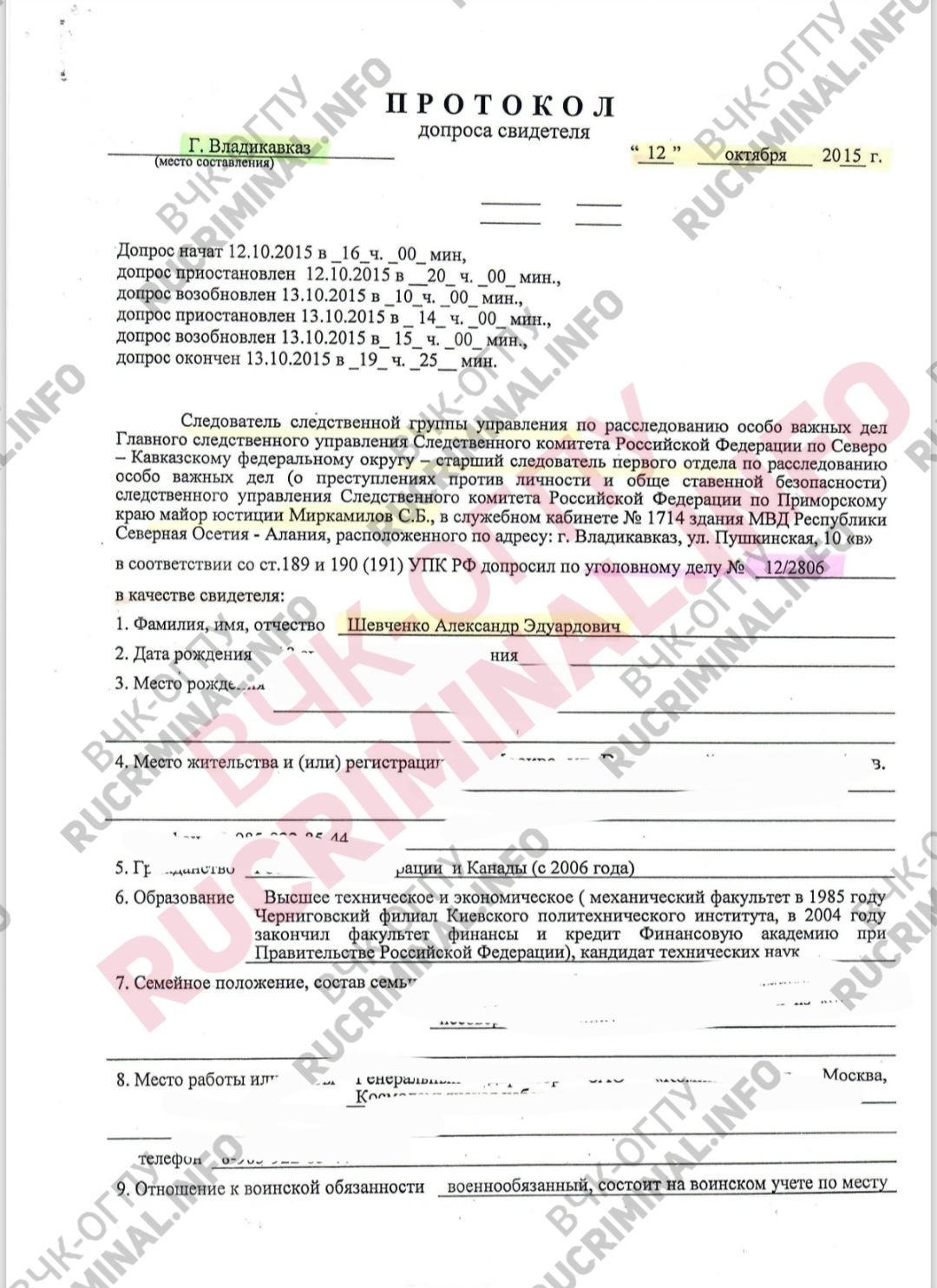 ВЧК-ОГПУ и Rucriminal.info продолжают публиковать материалы дела лидера одной из самых кровавых группировок киллеров Аслана Гагиева (Джако), которые по вполне понятным причинам не дошли до суда. Из них следует, что нынешний глава Росприроднадзора Светлана Радионова (на момент событий помощник прокурора ЦАО Москвы) в прямом смысле со стороны группировки Джако ездила на разборки с банкирами. Тогда она была гражданской женой «правой руки» и финансиста Гагиева Аркадия Берковича (он же Артур Хабибуллин). Радионова пугала банкиров уголовными делами, если это не помогало к делу подключались киллеры Джако и банкиров просто убивали. Сегодня приведем протокол допроса банкира Александра Шевченко, который столкнулся с прессингом Радионовой и ОПГ Гагиева.