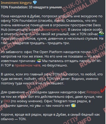 Под Fintopio брались миллионы долларов, при привлечении инвесторов в качестве гаранта назывался сам Павел Дуров. И это не было, как сейчас пишут, самодеятельностью Романа Новака. Как вспоминают очевидцы, побывавшие в офисе Fintopio — компания находилась рядом со штаб-квартирами Ton и Telegram в Дубае и никто никогда не скрывал, что это одна и та же «лавочка».