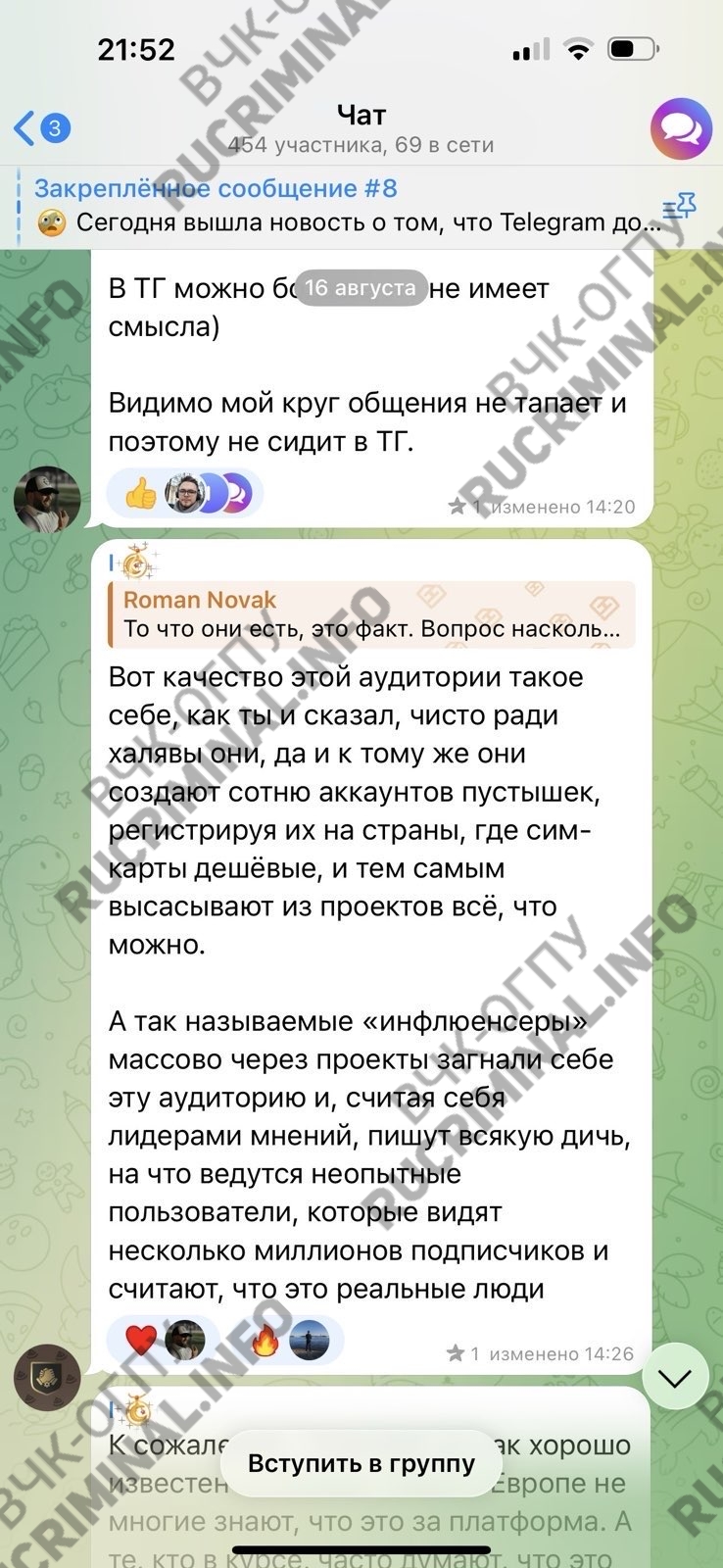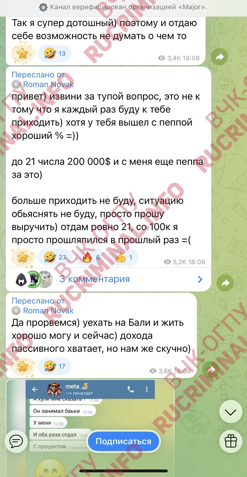 При этом Роман Новак сам себя осек в одном из чатов: он написал, что уже наговорил лишнего.