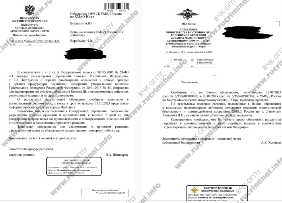 Но их заявление до сих пор остаётся без ответа. Родственники утверждают, что вышестоящая инстанция поручила проверку ОМВД по Лангепасу — заместителю начальника полиции по оперативной работе Игорю Воробьёву. А он является близким другом Ханюкова и тоже известен, как участника бизнеса на хищении металлолома.
