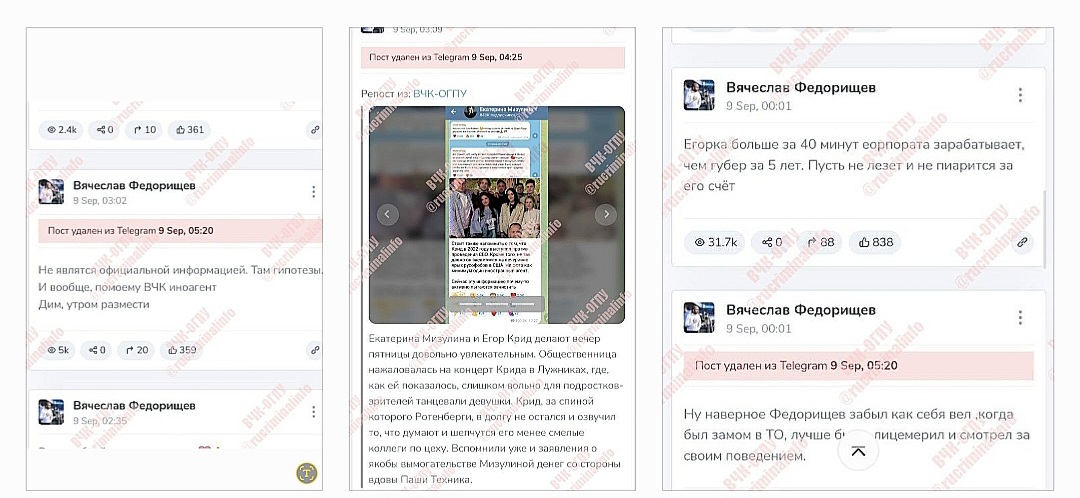 Наш проект тогда выяснил, что посты против Крида в Телеграм для Федоришева размещал блогер Павел Иванов, который, в свою очередь, позиционирует себя как помощника депутата Михаила Делягина. Примечательно, что с 2017 года Делягин получает финансирование от структур Константина Малофеева — того самого, что курирует деятельность Екатерины Мизулиной (Федорищеву вступился за Мизулину в ее войне с Кридом).