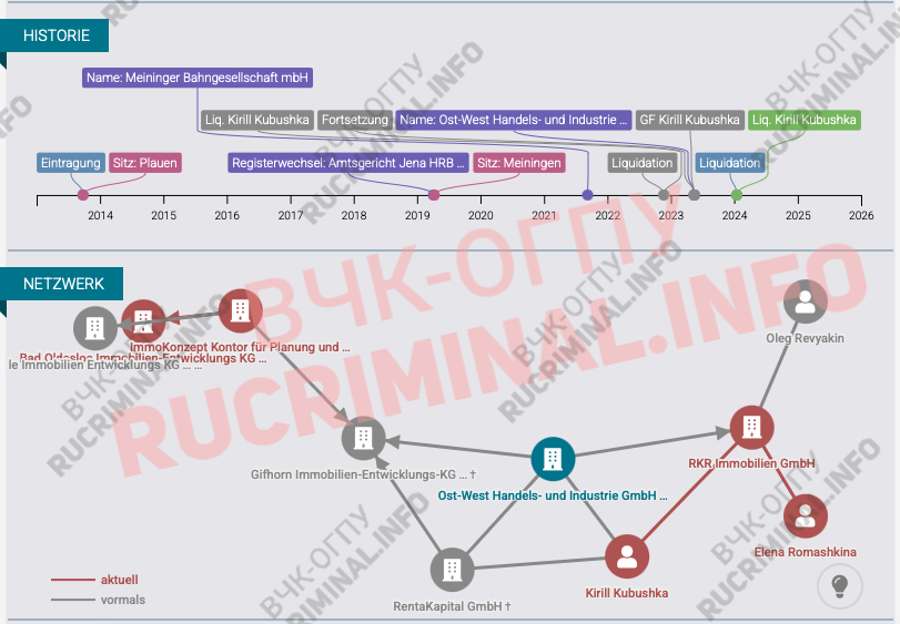 The mayor's office of Meiningen, Germany, first sold the local train station building to Kirill Kubyshka, a former member of the Russian Research Group, for €70,000. Then, after the war in Ukraine had begun, it bought the dilapidated building for… €2 million. As the Cheka-OGPU and Rucriminal.info discovered, Kubyshka is not an independent figure; behind him stands the sanctioned oligarch Alexander Abramov (a longtime associate of Roman Abramovich, who is also under sanctions). But that's not all. Kubyshka is connected to KGB veteran Eduard Bendersky, a close friend of secret service hitman Vadim Krasikov, who was arrested for murder in Germany and exchanged for Western prisoners.