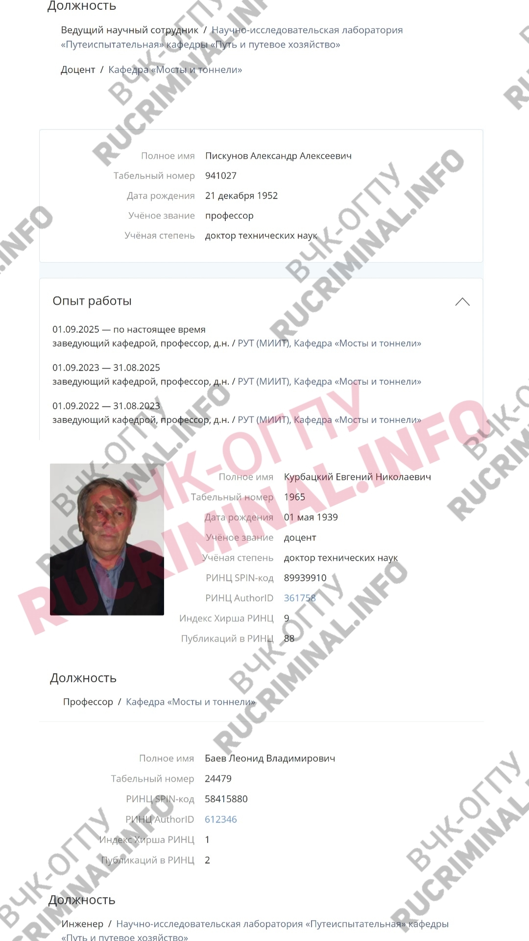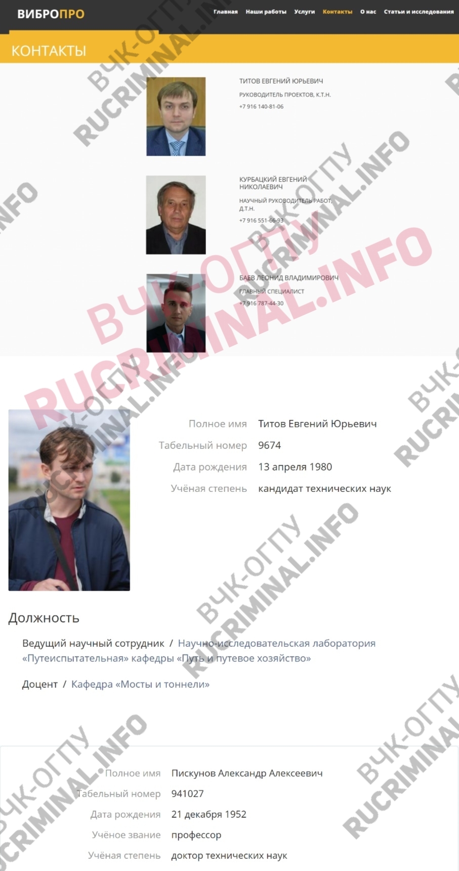 Episode #3. "Vibroprotection." Meet the most important link in this chain: Evgeny Titov. He is the founder of Vibropro (TIN 9717164150), the CEO of Vibropro, and an associate professor in the Bridges and Tunnels Department at MIIT, which Piskunov heads. Vibropro consists of four people, each of whom is an MIIT employee (see photo). Through him, Piskunov diverts orders from MIIT to their private company. This company then receives approvals from the Metro.