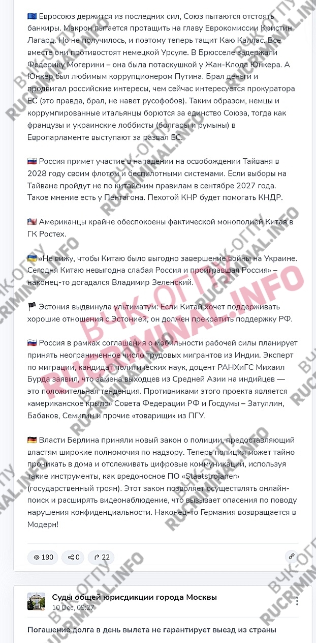 AAAAA. The Moscow City Court press service mistakenly posted a completely trashy post on their Telegram channel. It was full of it all: Kirill Dmitriev's panic; a Masonic conspiracy; "Putin's favorite corrupt official" from the EU, and so on and so forth. Apparently, the head of the press service, Elena Fomina, runs her own channel, which is what this post was intended for. The post didn't even last a minute...
