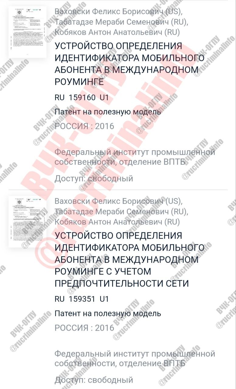 У Ваховски и Кобякова есть совместный патент на полезную модель «Устройство определения идентификатора мобильного абонента в международном роуминге с учетом предпочтительности сети».