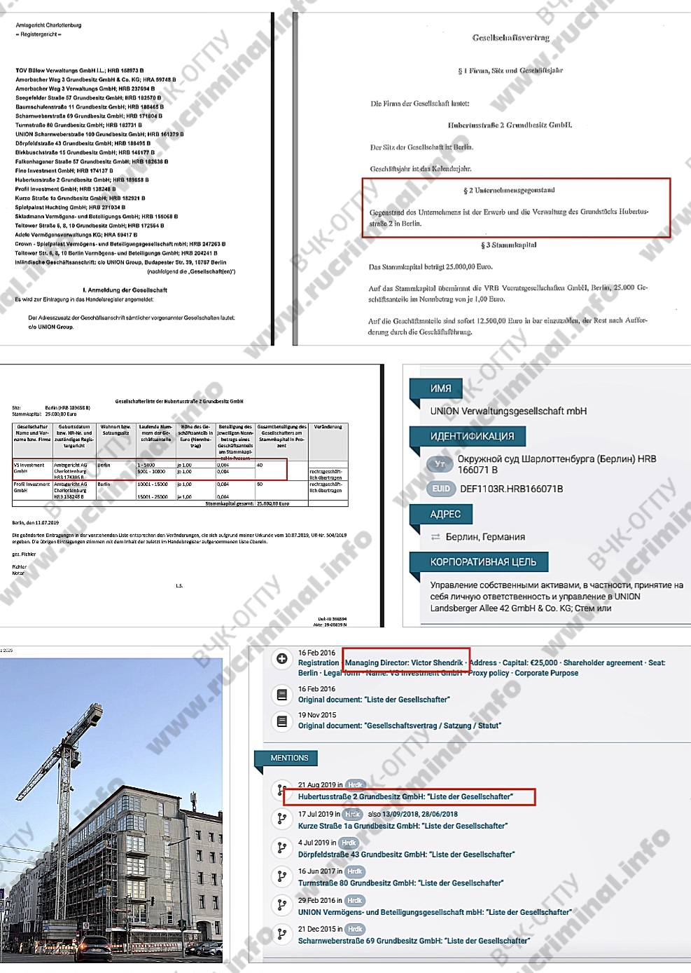 Еще одна компания, которая записана в Германии на VS Investment Шендрика — Union Vermögens und Beteiligungsgesellschaft. Изначально ей принадлежал земельный участок в Берлине на Landsberger Allee, 42. После серии слияний и поглощений фирма оказалась напрямую в составе Union Group, а на злополучном участке пятый год стоит недострой. Так Шендрик выполняет обещание властям Берлина построить там отель для туристов. При этом управлять своим европейским бизнесом Шендрик свободно может сам, поскольку санкций на нем нет, зато есть очень удобный сербский паспорт.