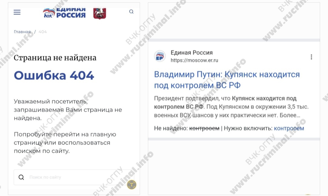 Сейчас на сайте «Елиной России» (смотрите скрины) в спешном порядке удаляют новость со словами Путина о взятии Купянска. Еще 28 ноября 2025 Герасимов и генерал Сергей Кузовлев публично доложили Путину о том, что Купянск «полностью в наших руках». И затем сам президент РФ не раз публично повторял эту информацию. Главнокомандующий ВСУ Александр Сырский ответил, что украинские силы продолжают удерживать оборону, а Владимир Зеленский побывал в окрестностях Купянска и даже снял видео.