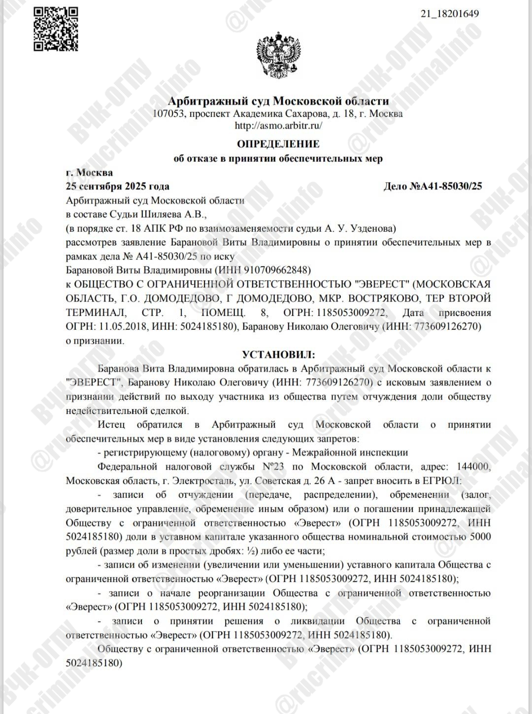Как стало известно телеграм-каналу ВЧК-ОГПУ и Rucriminal.info, из-за начавшихся проблем теневой банкир Николай Баранов (банк Славия) и его супруга Вита Баранова начали фиктивный раздел имущества. Как говорится, хитрая схема. Указанные в документах Арбитражного суда Московской области и других судов компании "Эверест" и "Стратегия", как и ряд других компаний Баранова и его старшего товарища по бизнесу по отмыванию средств Асада Аехдиева, активно участвуют в различных обнально-конвертных и контрабандных схемах. По словам источника, Николай и Вита Барановы живут в дорогостоящем ЖК "Жизнь на Плющихе", который строил "Донстрой" (Баранов на прямом общении с руководством "Донстроя" и обслуживает холдинг с его аффилированными компаниями по теме решалова в налоговой). Стоимость квартир в указанном ЖК начинается от 170 млн. рублей. Квартира Баранова с эксклюзивным ремонтом стоит более 700 млн. рубл. Мехдиев живёт в самом дорогом поселке на Рублево-Успенском шоссе - "Речной" (Барвиха). Дом у него, стоимость которого с земельным участком превышает 4 млрд рублей. Это к вопросу как в России живут и зарабатывают обнальщики, решалы и контрабандисты. Также у Мехдиева и Баранова множество недвижимости в Дубае. Туда также они выводят свои капиталы, нажитые преступным путем. Важно понимать, что Мехдиев и Баранов не только генералу ФСБ Ивану Ткачеву платят за "крышу", но и в другие подразделения ФСБ - в УСБ и УФСБ по Москве и Московской области. За счет того что они платят в ФСБ и МВД, они и чувствуют себя неприкасаемыми. Но сколько веревочке не виться конец всё равно будет. Также Баранов всем хвастается, что играет в настольный теннис с главой СВР Сергеем Нарышкиным и может с последним решить любой вопрос. Разумеется, не за бесплатно.