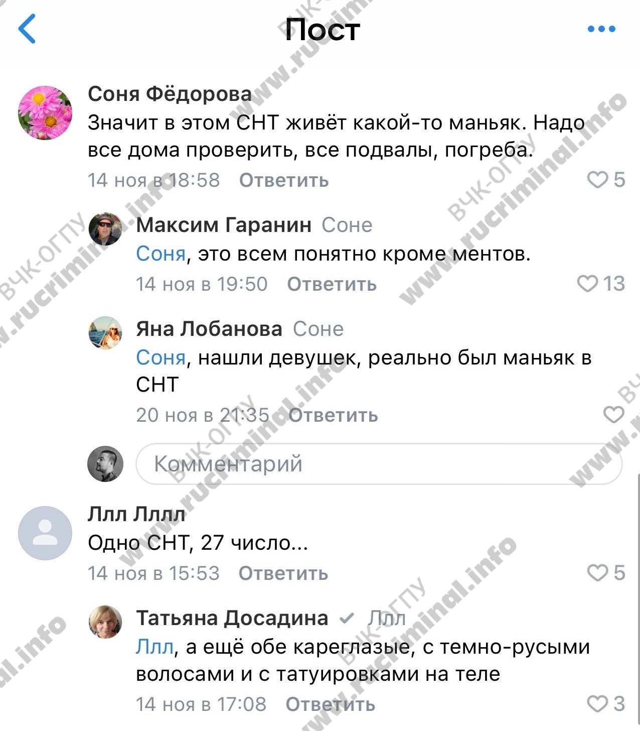 Первое заявление в МВД о том, что пропал человек несколько месяцев пылилось в полиции. Еще летом мать одной из жертв подала заявление о том, что в Богородском районе пропала ее дочь. Дальше начался обычная для МВД РФ волокита и переброска неудобного заявление на «чужие плечи». Заявление был направлено из Электроуглей в Королёв по месту жительства пропавшей, а там его просто отправили в «долгий ящик».