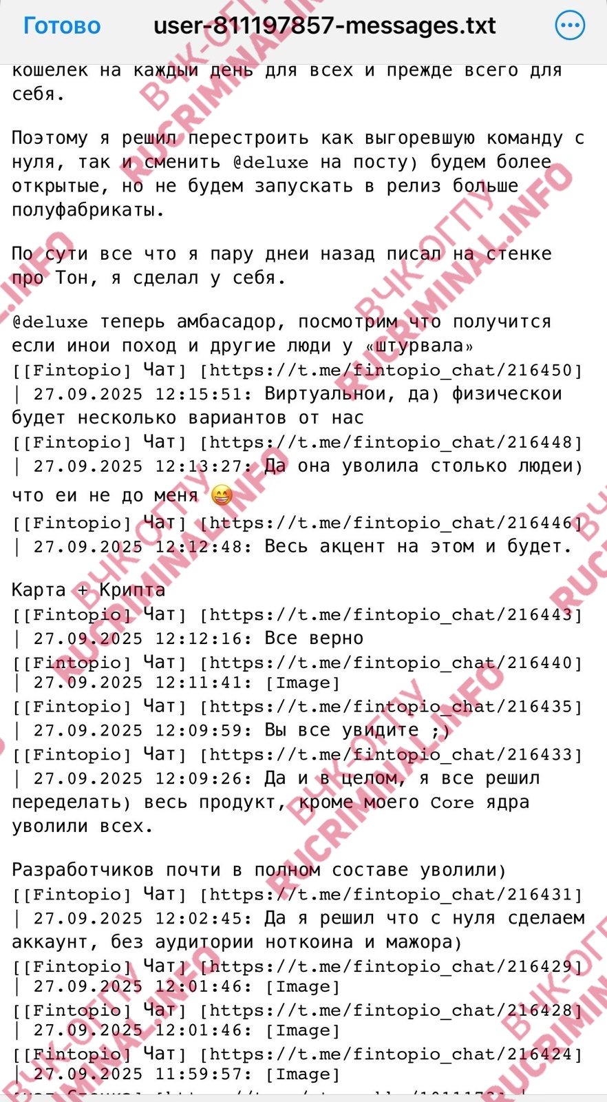 Как удалось выяснить ВЧК-ОГПУ и редакции Rucriminal.info, в тот же период у Романа Новака явно произошел раскол с командой Павла Дурова. @deluxe обрушился с резкой критикой на Telegram, Ton-тусовку и лично Павла Дурова. (Публикуем выдержки из чата Fintopio, где он писал вплоть до 29 сентября).