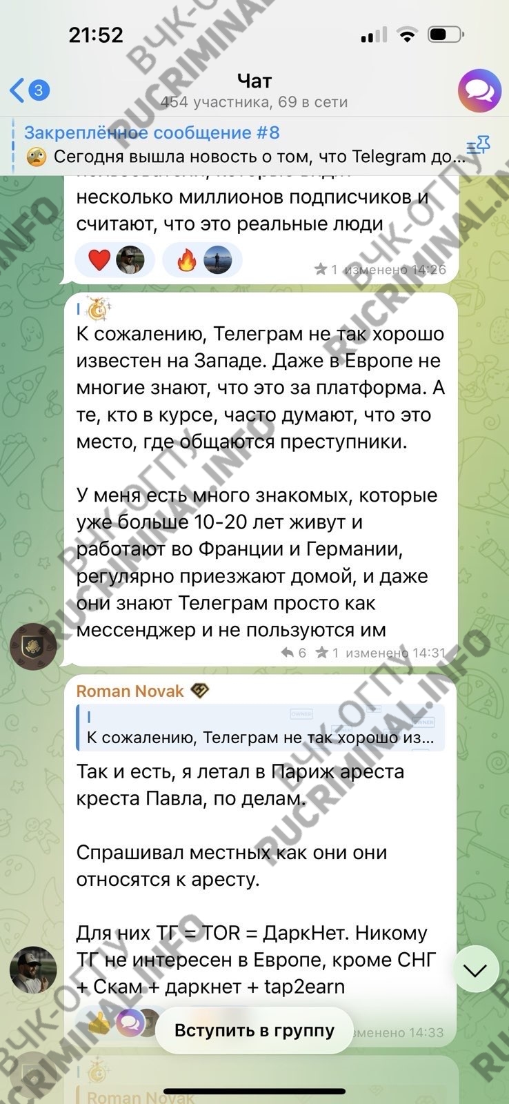 ВЧК-ОГПУ и Rucriminal.info продолжают публиковать свое расследование убийства друга и партнера Павла Дурова — основателя Fintopio, входящего в самый близкий круг основателя Telegram Романа Новака. Нам удалось выяснить, что незадолго до похищения в команде близких создателя мессенджера произошел раскол. Роман Новак начал резко критиковать проекты и лично Павла Дурова, после чего был убит.