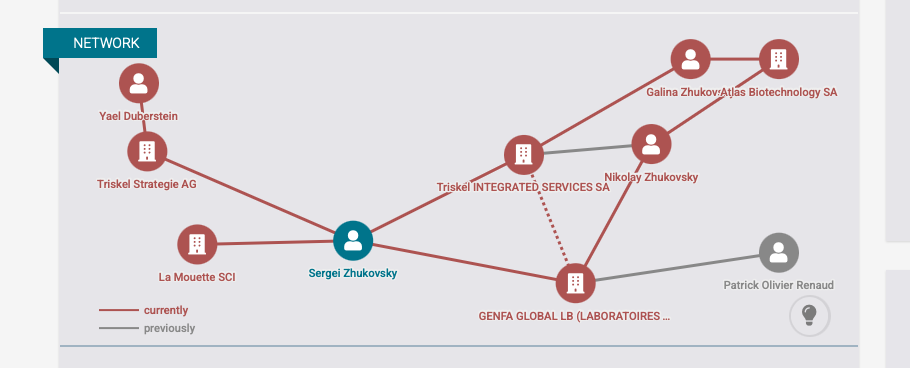 До июля 2019 года директором швейцарской компании оставался Семен Винокуров (резидент Монако), а до 2017 года ее совладельцем был и сам Александр Винокуров. Сегодня «Генфу» полностью контролирует семья Жуковских — Сергей, Галина и Николай (резиденты Швейцарии, Израиля и Латвии).