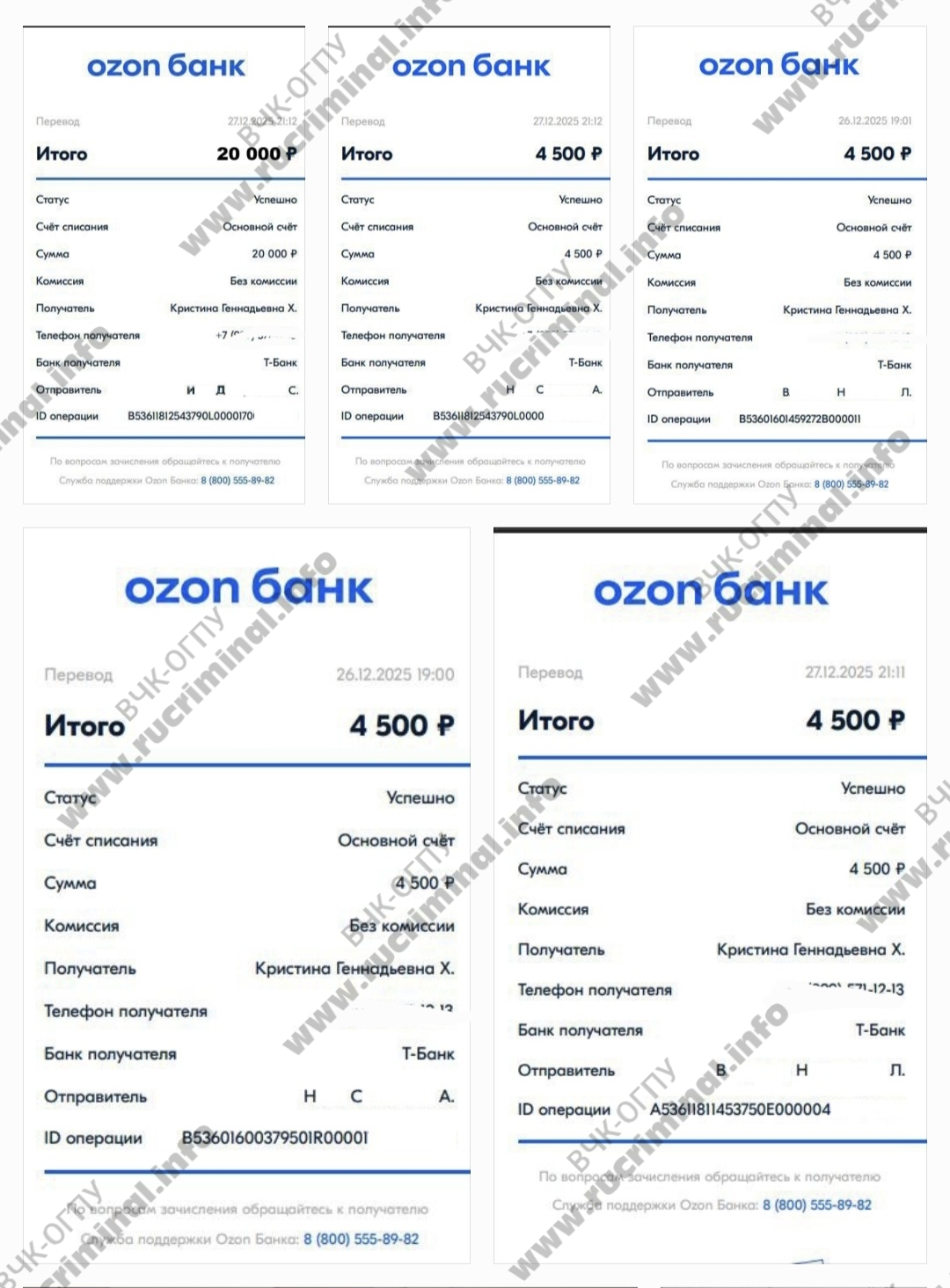 Со слов наших собеседников, ставших жертвами силовика Ильи Ханюкова, он на постоянной основе вымогает денежные средства у местных бизнесменов за общее покровительство. Чтобы установить это, достаточно проверить личную карту супруги (Ханюковой Кристины Геннадьевны) и поступления на нее. Жена силовика активно меняет номера телефонов, счета в разных банках, а также транспортные средства, однако это не вызывает вопросов у ОРЧ СБ.