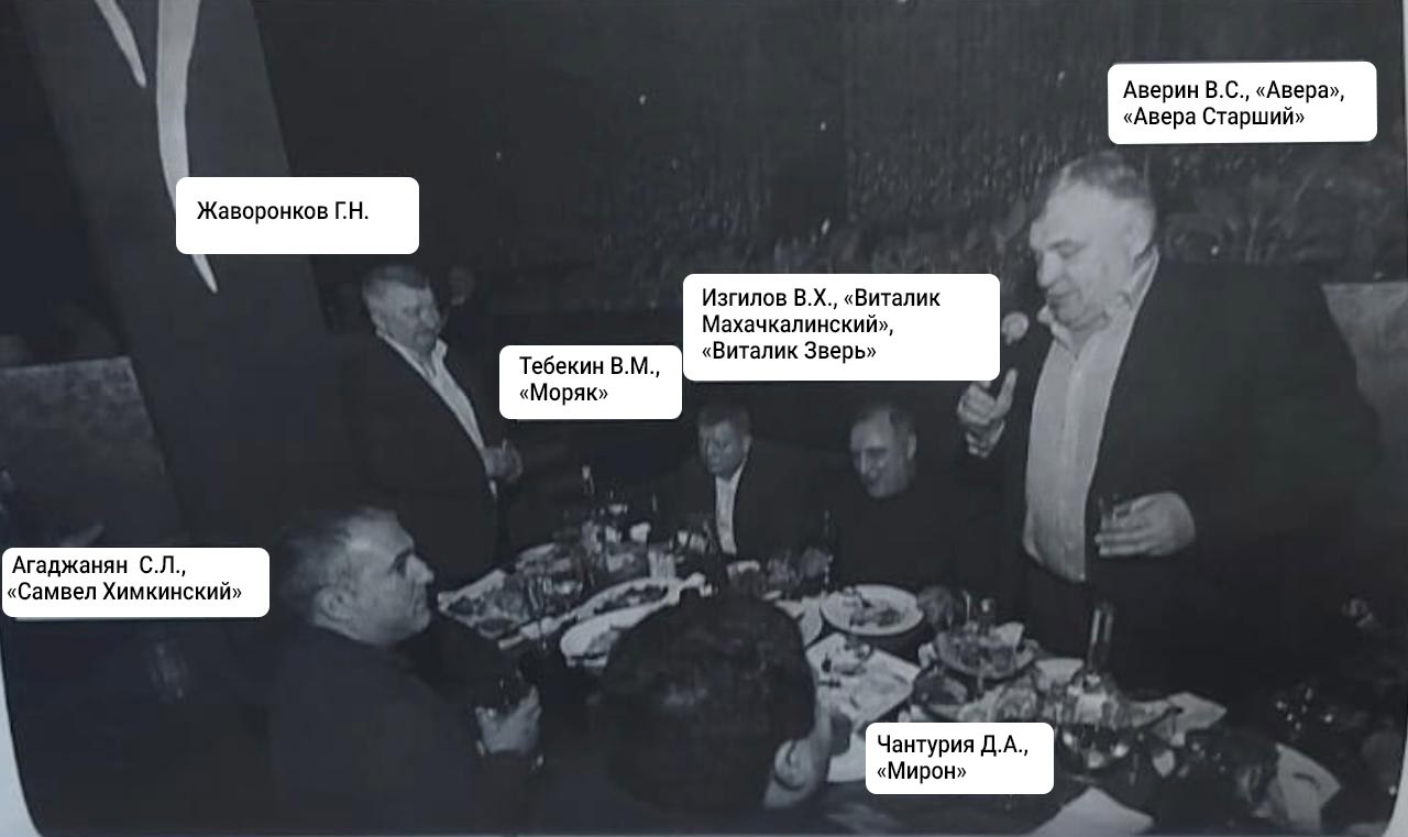 В распоряжении журналистов оказались фотоматериалы , где авторитетный белгородский предприниматель Владимир Тебекин (Моряк) запечатлен на воровской «сходке» - в компании криминальных лидеров из разных регионов России. Несмотря на многочисленные свидетельские показания, адвокаты Тебекина до недавнего времени продолжали говорить, что доказательств, подтверждающих причастность их доверителя к занятию высшего положения в преступной иерархии, не существует. Но фотодокументы говорят об обратном. На одном из снимков Тебекин сидит за столом с алкоголем и закусками в кампании В.Х. Изгилова (Виталик Махачкалинский), Д.А. Чантурия (Мирона), В.С. Аверина (Авера Старший), С.Л. Агаджаняна (Самвел Химкинский). На фото Моряк хорошо узнаваем, и сидит за столом на почетном месте – рядом с тем, кто во главе застолья.